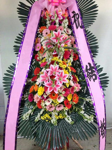 탁구회원분의 결혼을 축하하기 위한 3단화환